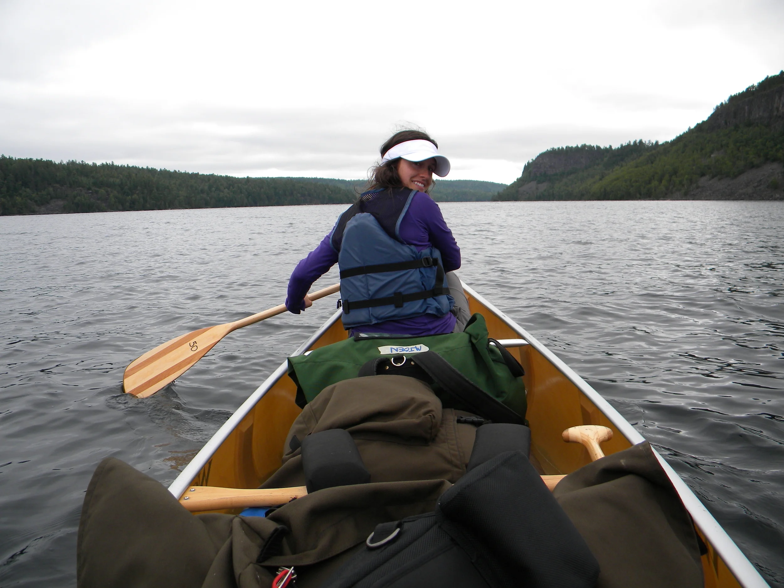 As we followed the creek that was produced by the falls, we zig zagged left and right and up and down. Since we left the canoe, I got to see so much more! Also we only had about 5.5 hours to do it to ensure that we would be back before dark! So we walked or portaged 610 rods and about 320 rods = 1 mile. And we paddled about 4 additional miles! Needless to say we felt rushed, its a lot of paddling in the wind as well but once we got there it was spectacular! Big wide and about 20 feet fall. There was a large pool at its base. I stripped down to my underwear and went for an ice bath! Jess and I ate our snack and then decided to go back.