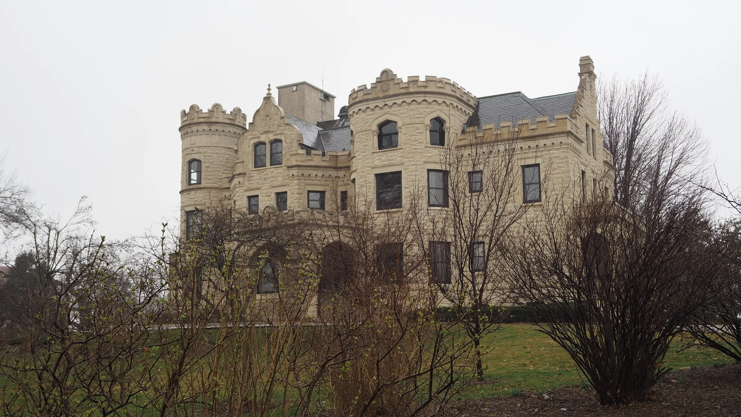 It started raining pretty good as we got to Nebraska. We decided that our stops would be minimal just to be sure we could get to Mormon Island. We stopped in Omaha to fill up and realized that there was a CASTLE there to see! I couldn't pass up seeing a castle, especially since we hadn't seen anything super awesome for awhile. It's the Joslyn Castle. It was built in 1903 and is magnificent! It took up a the whole block.