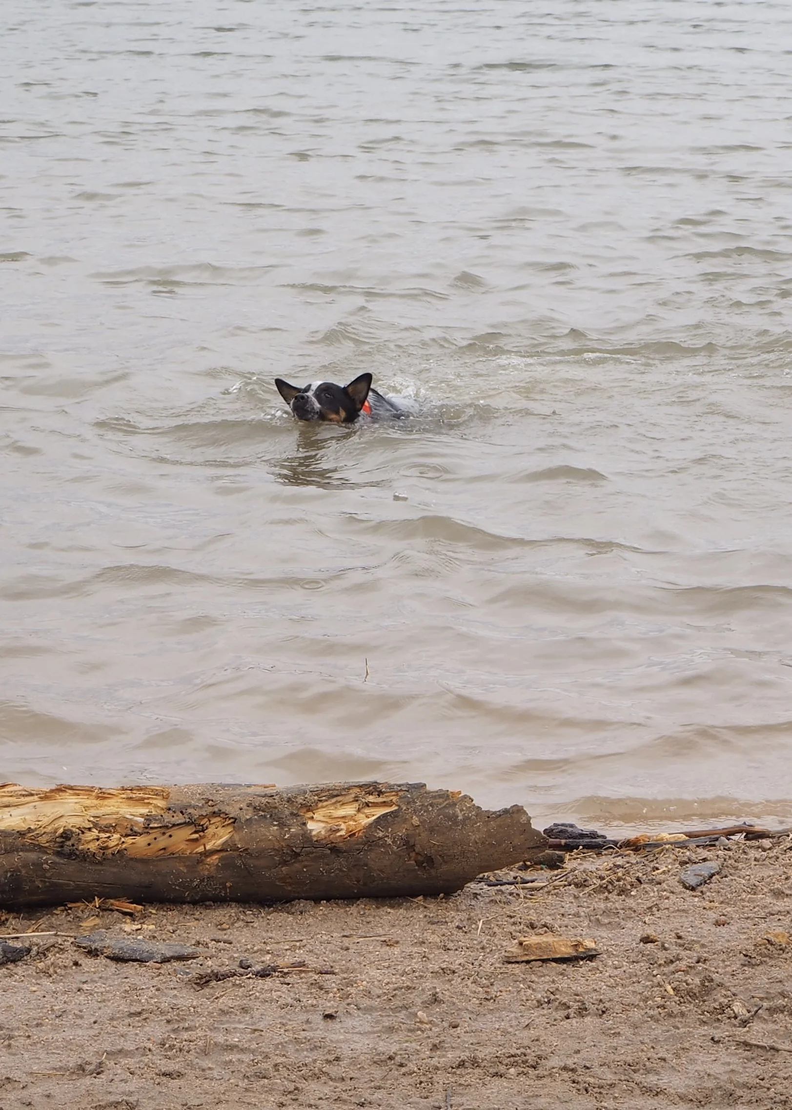 Thankfully I made reservations so we had a site. After we got checked in we pitched our tent and then drove down to the dog park, another 6 miles back the way we came! The dog park was huge! There were at least 50 dogs there. The dog park is 65 acres and full of trails and a couple ponds. We spent a ton of time there, we walked over 3 miles! Little Birch had his first water experience and found a snake friend!!!
